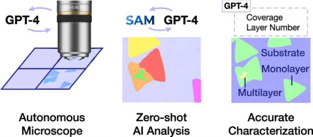 To speed up the process, Wang’s team linked an off‑the‑shelf optical microscope to ChatGPT, allowing the model to handle basic operations like moving the sample, focusing the image and adjusting light levels. Layered on top was SAM, an open‑source vision model designed to identify discrete objects, which, in the case of materials samples, would include regions containing defects and pure areas.