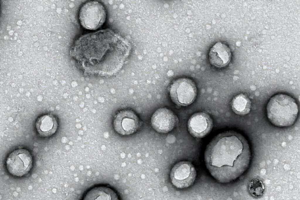 Microscopic image of membrane-wrapped nanoparticles with protein coronas. Credit: University of Delaware