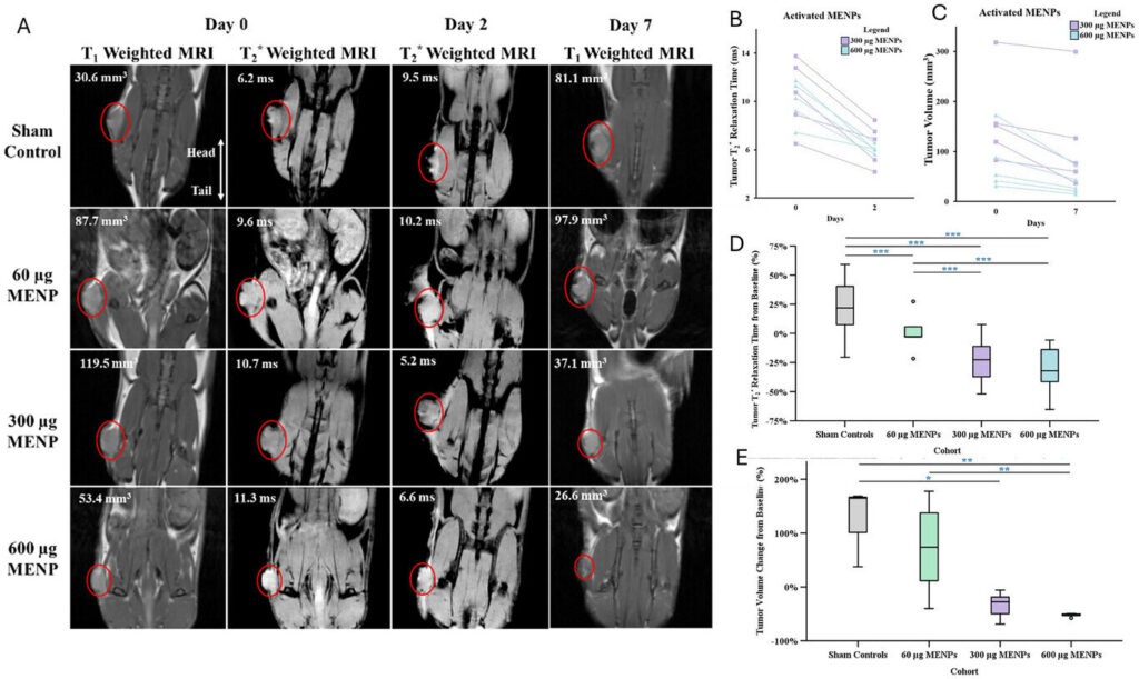 MRI scans confirmed that this treatment reduced tumor size and produced clear imaging signals, supporting MENPs as a powerful therapy and diagnostic, or “theranostic,” tool. Because the particles function without pharmaceutical drugs or biological reagents, the approach minimizes side effects and could eventually be applied to other difficult-to-treat diseases.