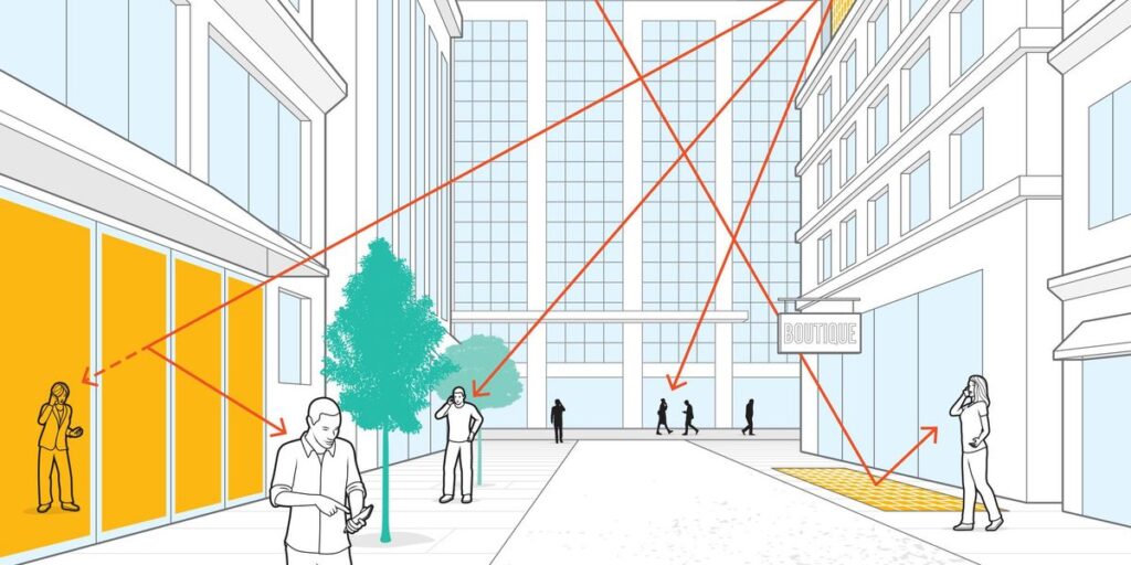 That’s important, because as we move to higher frequencies, the propagation characteristics become more “hostile” to the signal. The wireless channel varies constantly depending on surrounding objects. At 5G and 6G frequencies, the wavelength is vanishingly small compared to the size of buildings, vehicles, hills, trees, and rain. Lower-frequency waves diffract around or through such obstacles, but higher-frequency signals are absorbed, reflected, or scattered. Basically, at these frequencies, the line-of-sight signal is about all you can count on.