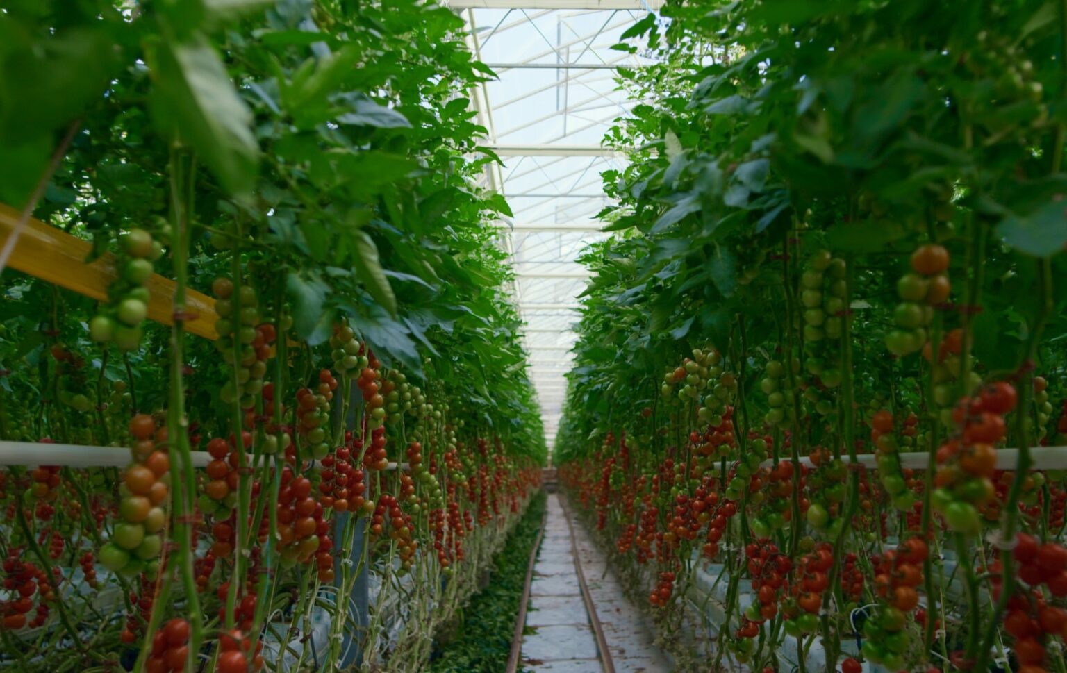 Tomato crop green house small tomatoes on the vine. Image Credit: Depiction Images/Shutterstock.com