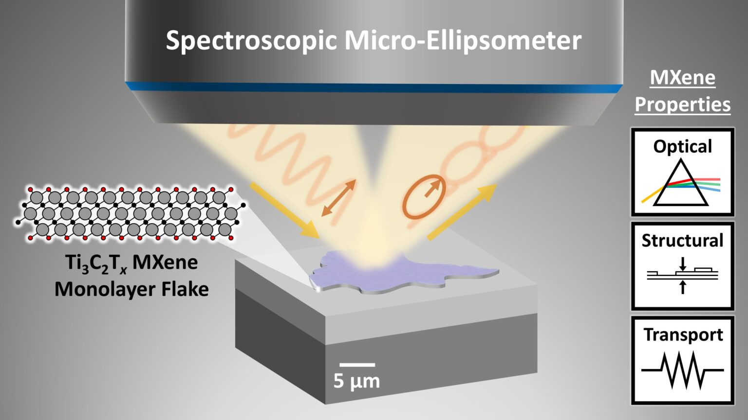 As a result, ellipsometry measurements on MXenes have been limited to macroscopic thin films made of stacked, overlapping flakes. This limitation has prevented direct measurements of individual MXene flakes, whose lateral dimensions are much smaller, thereby hindering a true understanding of their intrinsic properties.