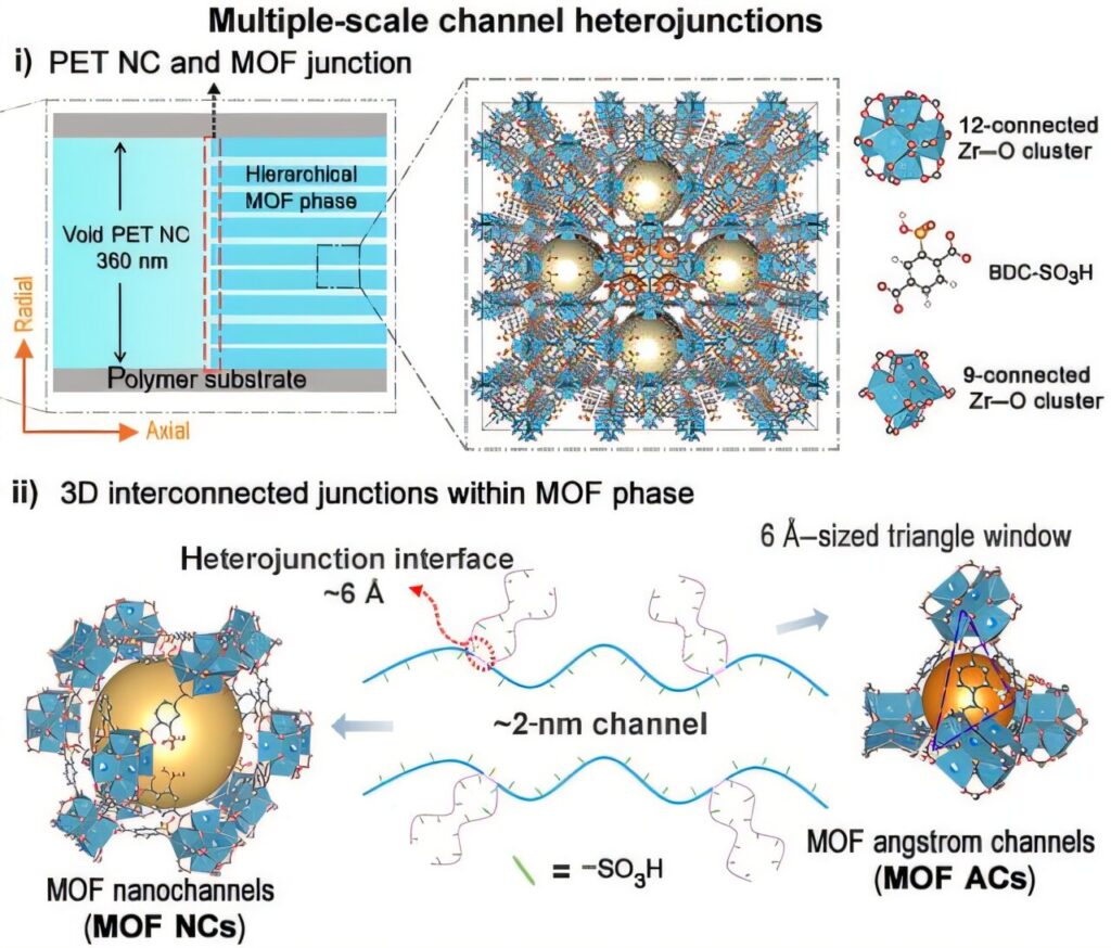 “What makes our device truly special is its hierarchical structure, which allows it to control protons and metal ions in entirely different ways. This kind of selective, nonlinear ion transport hasn’t been seen before in nanofluidics.”