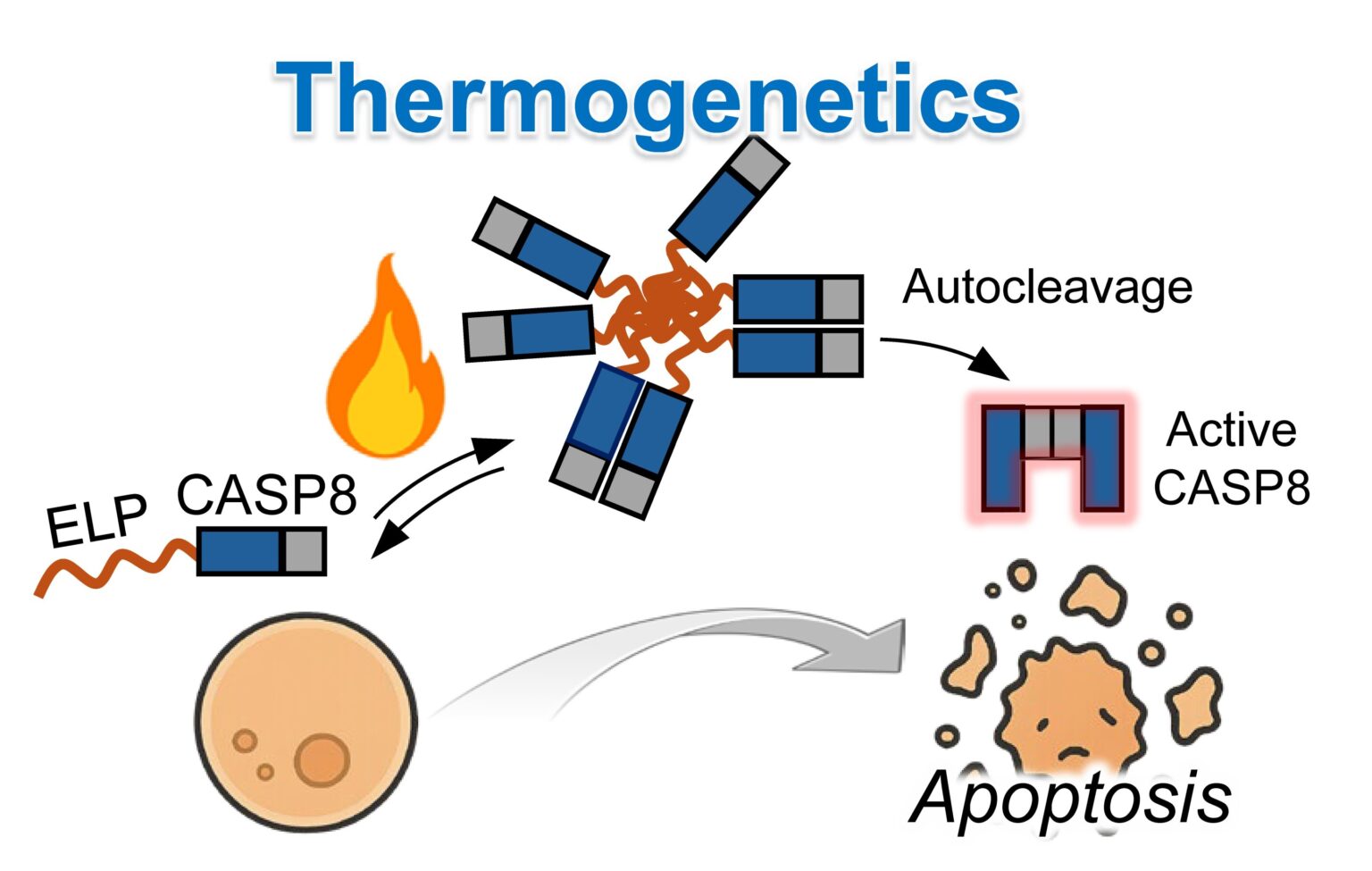 The researchers coupled ELPs to a protein called caspase-8 (CASP8), which is found in humans and other mammals. When activated, CASP8 undergoes structural transformations that ultimately lead to the host cell’s death, a process referred to as apoptosis.