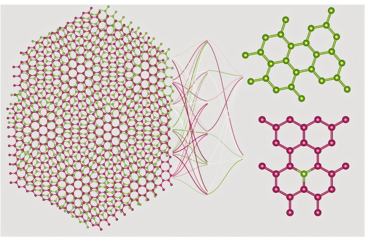 Layering the 2D materials at a slight angle creates intricate moiré patterns, similar to the wavy distortion seen when two window screens overlap. While visually striking, the patterns complicate efforts to identify individual atoms, even with advanced imaging tools such as scanning transmission electron microscopy (STEM).